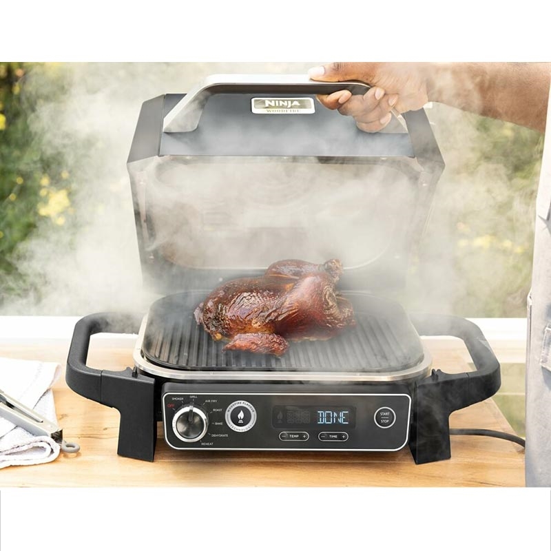 Os modernos grelhadores eléctricos para churrasco, como o Ninja Woodfire, oferecem a conveniência dos grelhados tradicionais com o benefício adicional da defumação a lenha, permitindo uma variedade de métodos de cozedura num único dispositivo compacto.