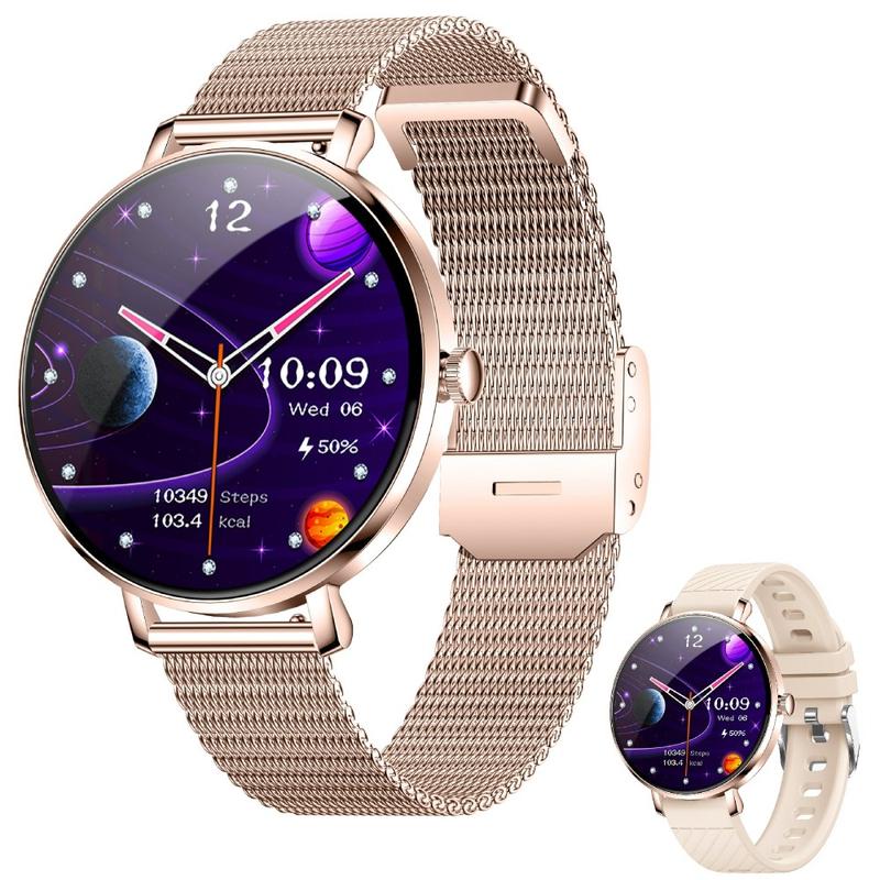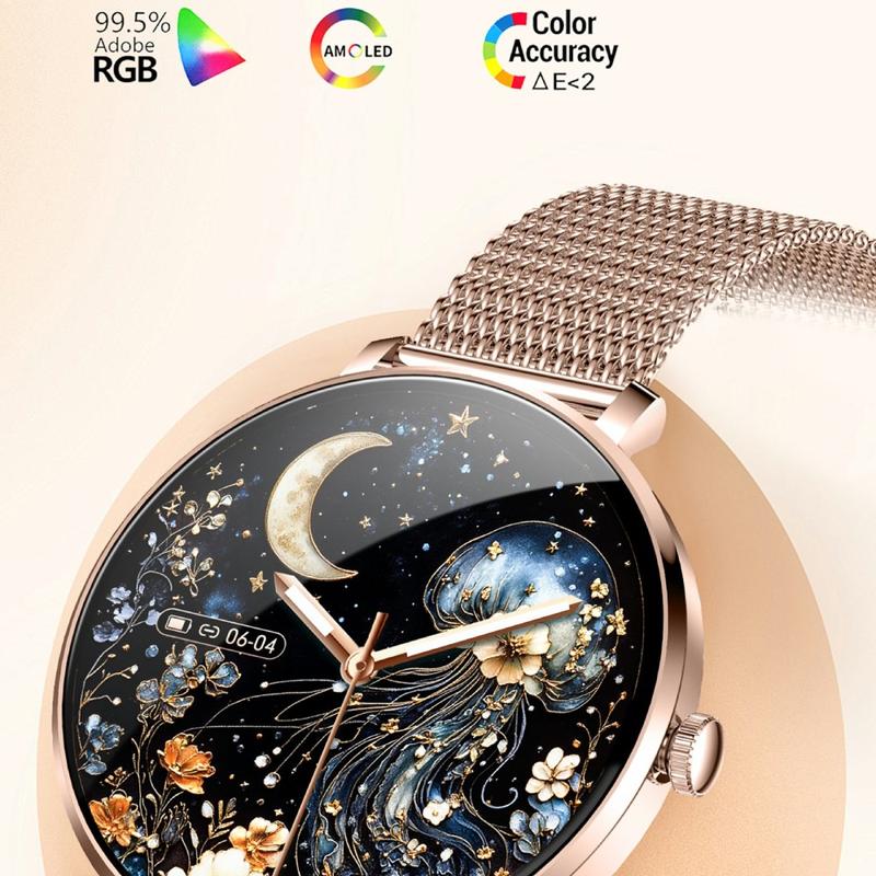 NX21 Relógio inteligente feminino - Relógio inteligente AMOLED de monitorização da saúde com Bluetooth 5.3, bracelete dupla e proteção IP68 à prova de água