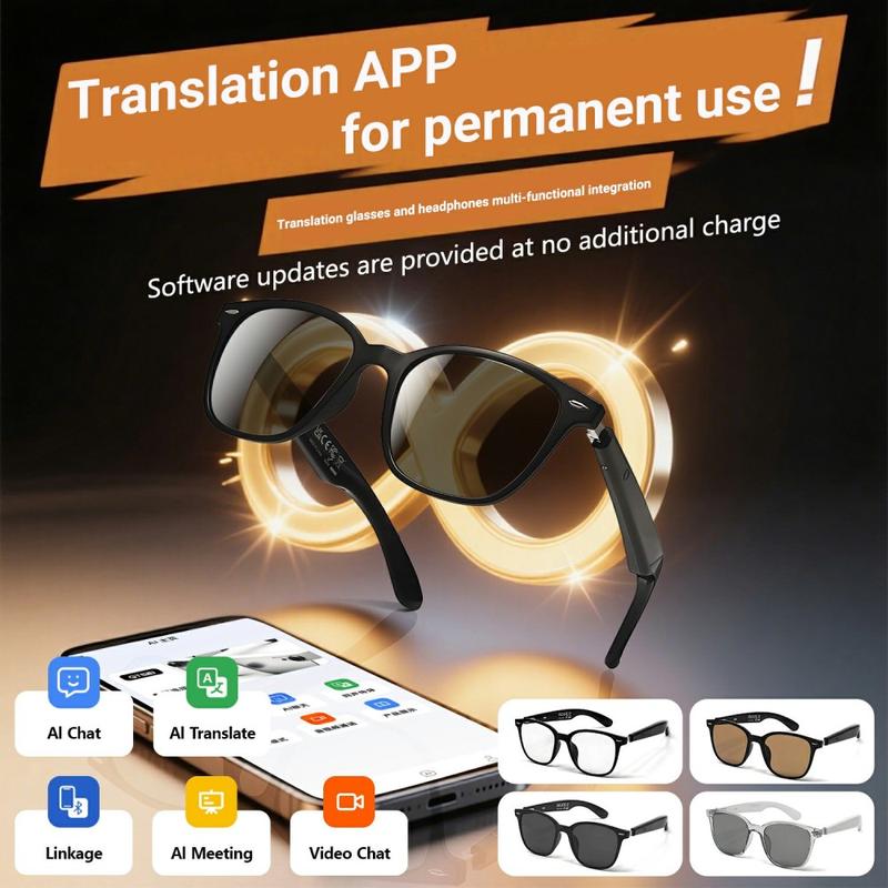 Óculos de tradução inteligentes GT-35 com IA - IA de 68 idiomas, proteção UV400 / luz azul e chamadas Bluetooth 5.4