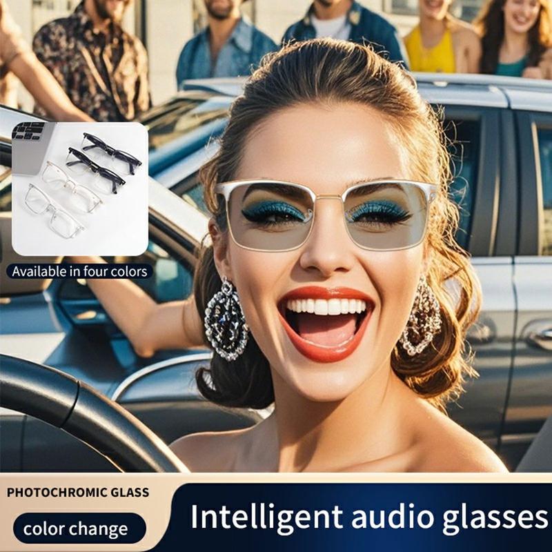 Óculos inteligentes GS13 com tradução de IA, chamadas/música Bluetooth - Lentes fotocromáticas UV400