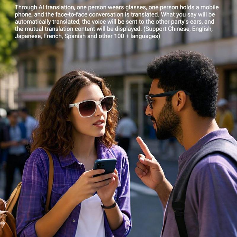 - Viajantes: Quebre as barreiras linguísticas com a tradução de IA enquanto protege seus olhos do sol.