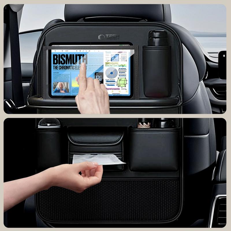 Tech-Protect UCA100 Organizador para o banco traseiro do automóvel - 59 x 43 cm Armazenamento com vários bolsos e tabuleiro rebatível para computador portátil/tablet