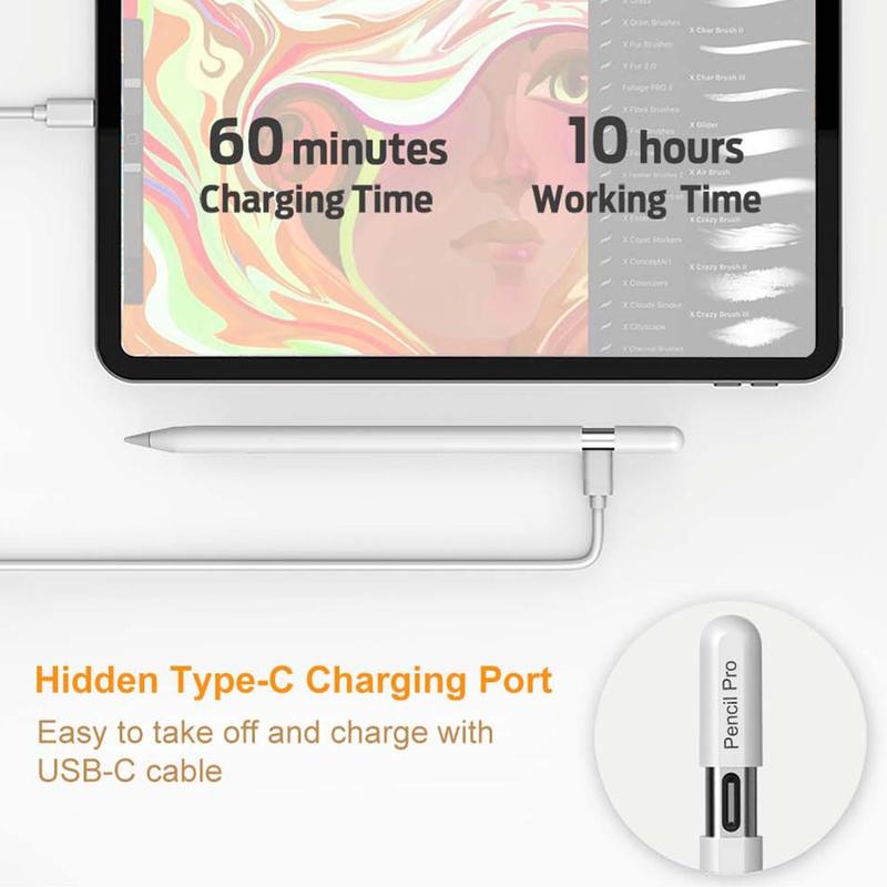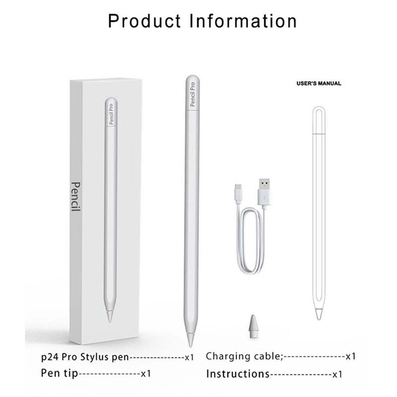 P24 Pro Magnetic-Charge Stylus para iPad - Lápis sem fios com ponta substituível de 1,7 mm, bateria de 10 horas, cabo de apoio tipo C