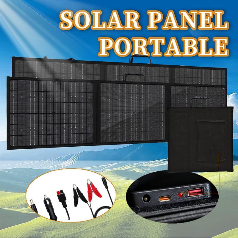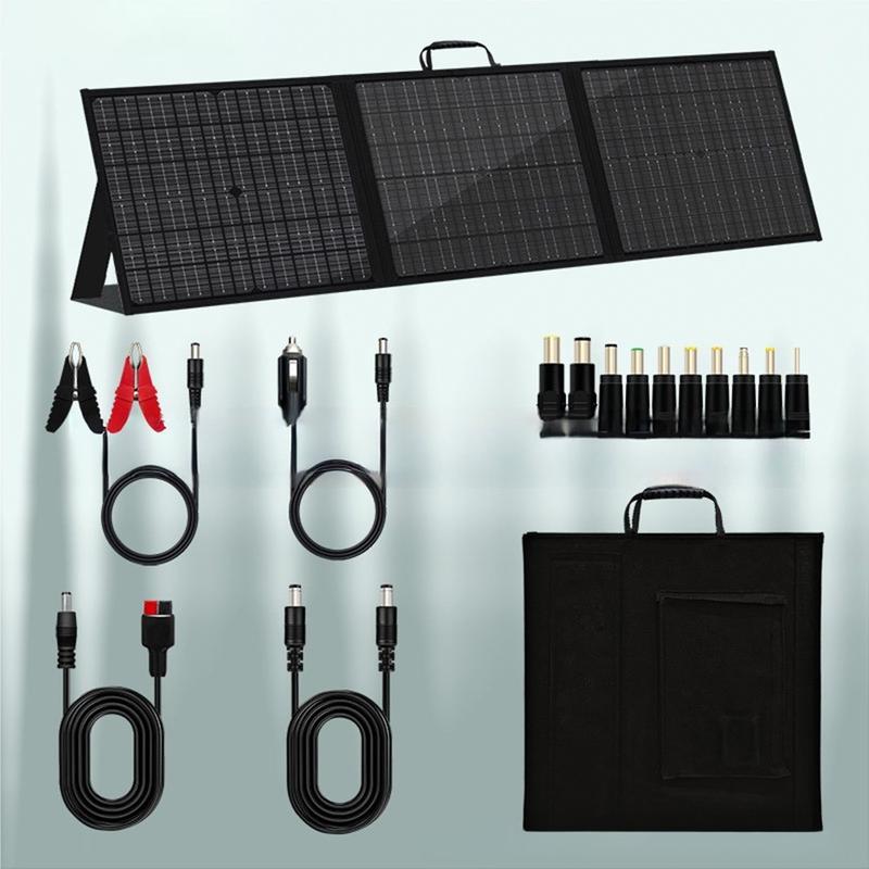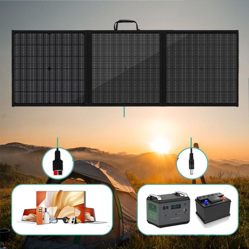 O carregador solar portátil de 100W foi concebido para aventuras ao ar livre, viagens e fornecimento de energia de emergência. Construído com células solares de silício monocristalino de alta eficiência, fornece energia solar fiável, mantendo-se leve e fácil de transportar. Graças ao seu design triplo, o painel desdobra-se numa grande superfície de carregamento e dobra-se de forma compacta para armazenamento. Com várias interfaces de saída, incluindo USB, USB-C e DC, suporta o carregamento de smartphones, tablets, câmaras, drones e estações de energia portáteis. A construção à prova de água e poeira IP65 garante um desempenho fiável em condições exteriores variáveis.