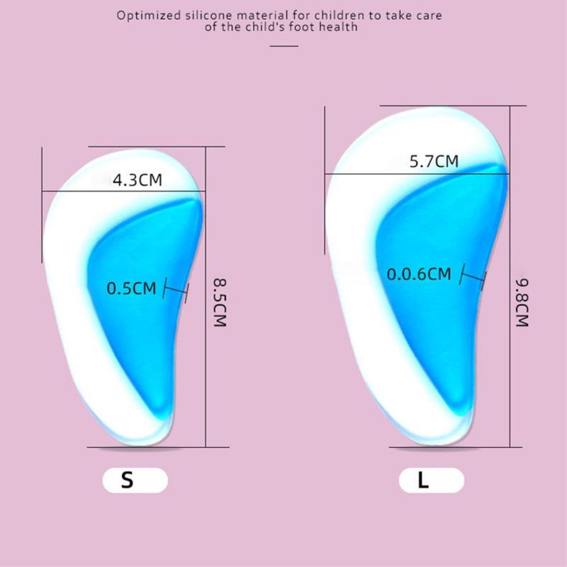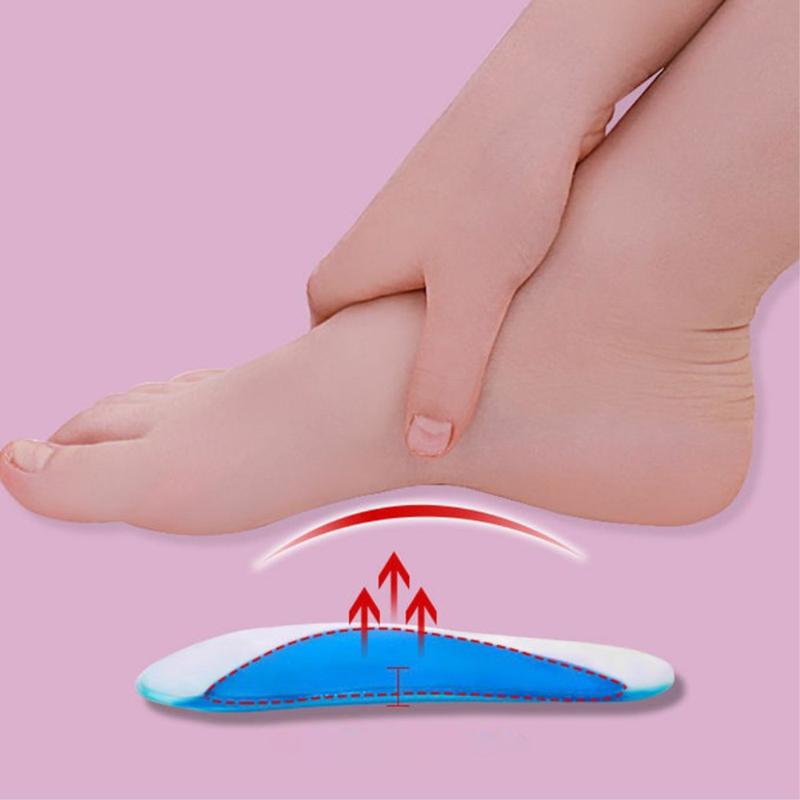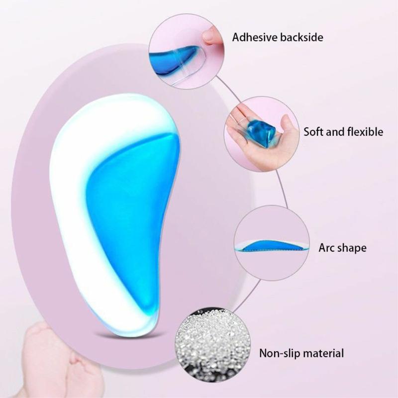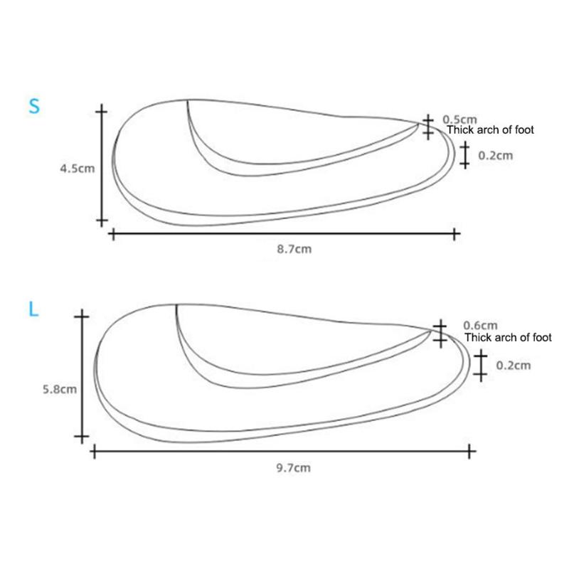 - Suporte de silicone para o arco: Proporciona um apoio firme mas suave aos arcos, ajudando a aliviar a dor associada a pés chatos, fascite plantar e arcos altos.