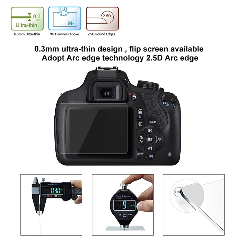 - Película protectora com 0,3mm de espessura para câmaras Canon EOS 1200D, 1300D