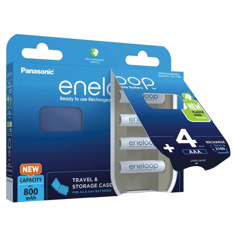 Pilhas recarregáveis Panasonic Eneloop BK-3MCDEC4BE R6/AA 2000mAh com caixa de armazenamento - 4 unidades.