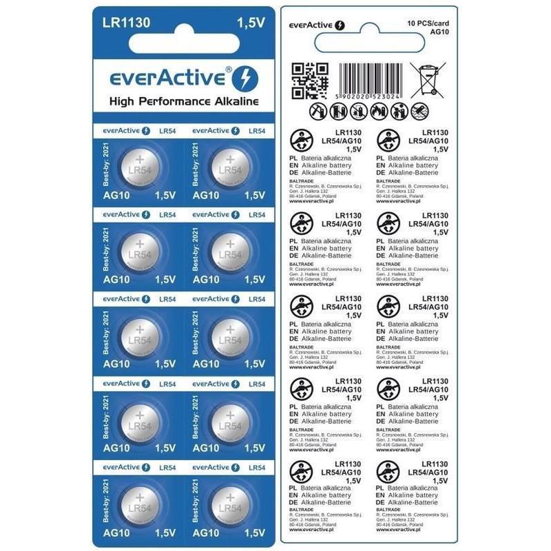Pilhas de botão alcalinas EverActive AG10 LR1130/LR54 - 10 unidades