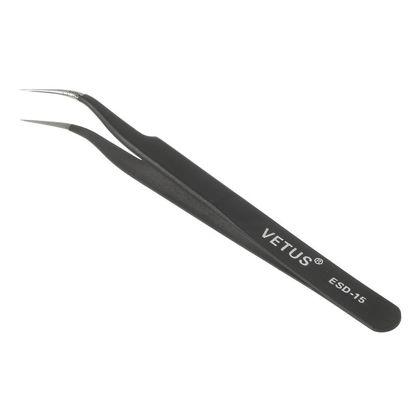 1 x VETUS ESD-15 Ferramenta de manutenção com pinça curva de ponta fina de aço inoxidável anti-estática, comprimento: 120mm