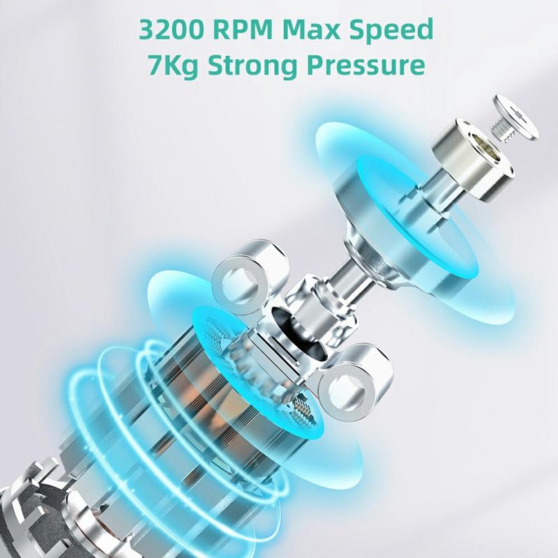 - Intensidade ajustável com controlo de velocidade contínuo: Equipado com um motor sem escovas, oferece uma gama de velocidades de 1000-3200rpm (±10%), permitindo-lhe personalizar a intensidade da massagem de acordo com o seu nível de conforto.
