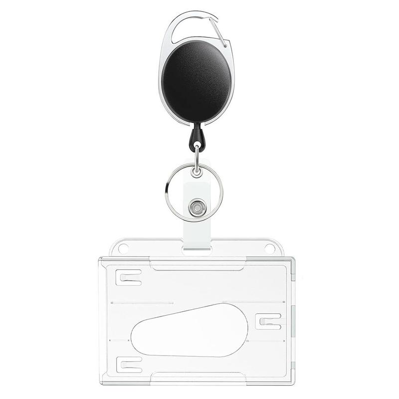 Porta-cartões de acesso/identificação com mosquetão e cordão retrátil