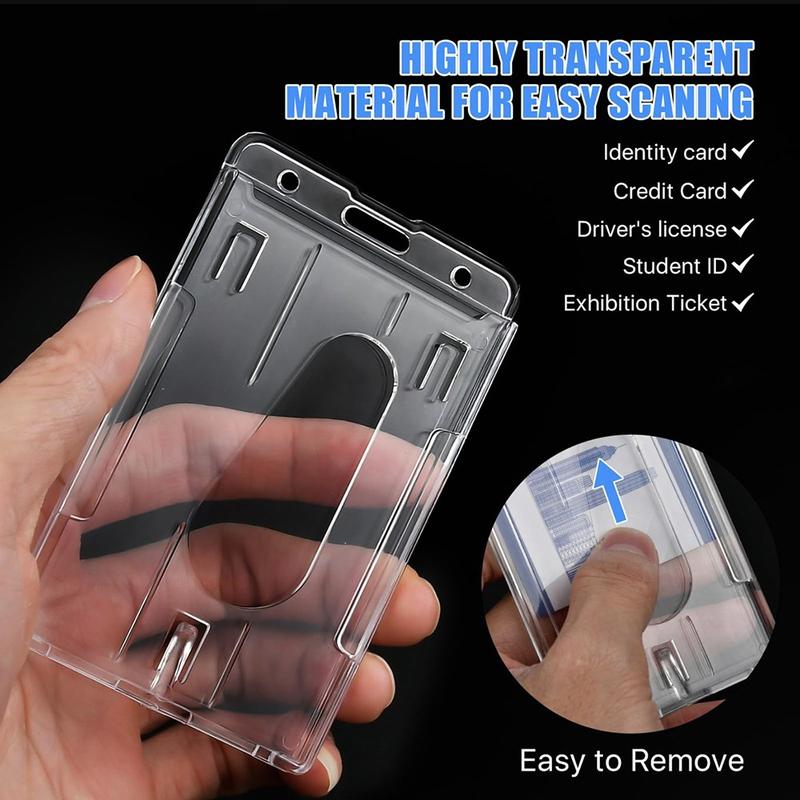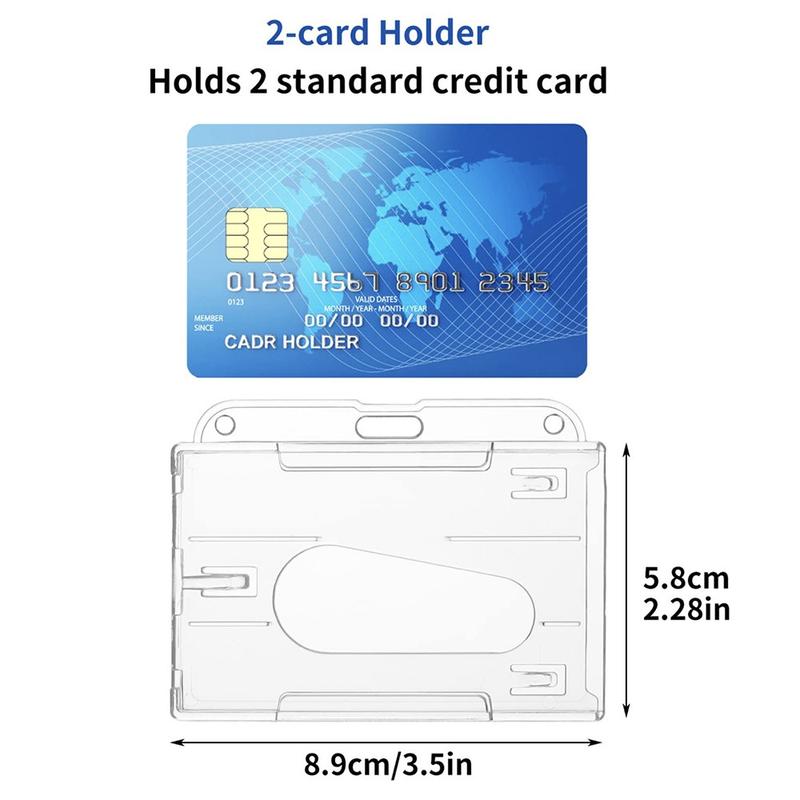 - As duas ranhuras horizontais aceitam dois cartões padrão de 86 × 54 mm (ID + acesso, passe de viagem + cartão de funcionário)
