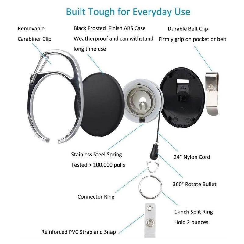- Carretel retrátil em liga de zinco com cabo de nylon de 60 cm para uma digitalização sem esforço