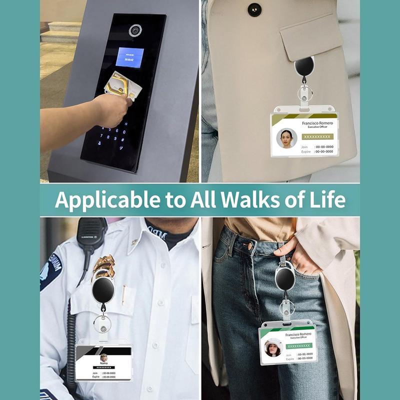 Prenda, passe o cartão e continue o seu dia. Este porta-cartões retrátil combina uma caixa de cartão em policarbonato à prova de riscos com um carreto liso em liga de zinco, mantendo dois cartões seguros, visíveis e prontos para cada ponto de controlo. O cabo de tração de 60 cm volta para trás sem fazer barulho e o mosquetão integrado prende-se às presilhas dos cintos ou às alças das malas em segundos.