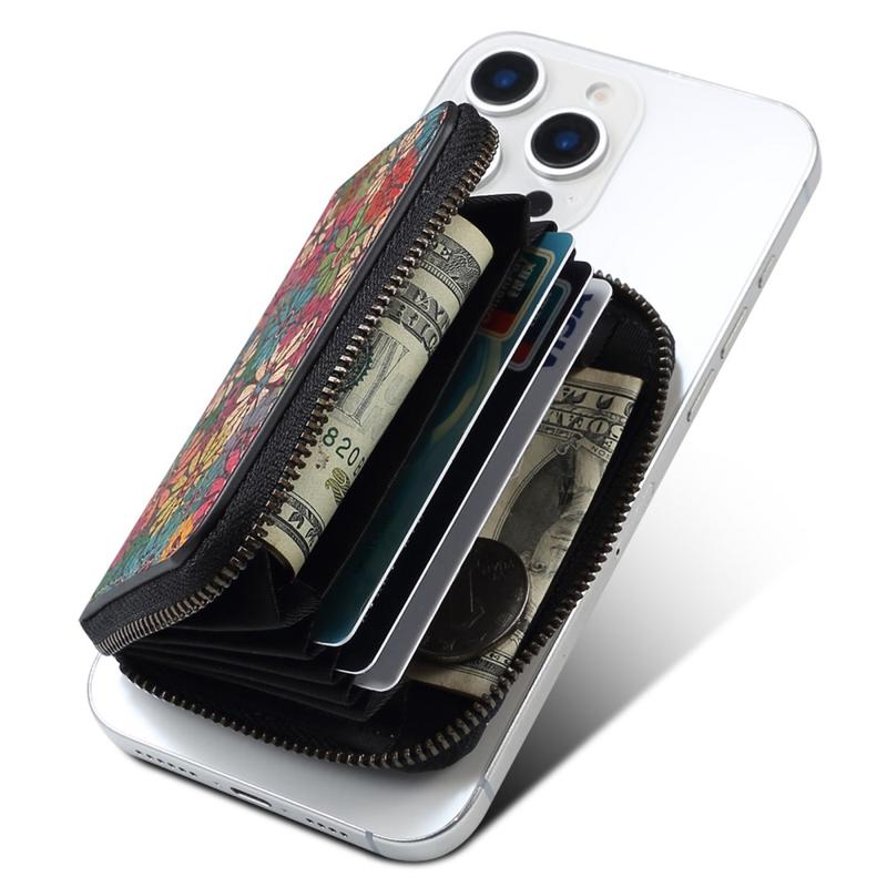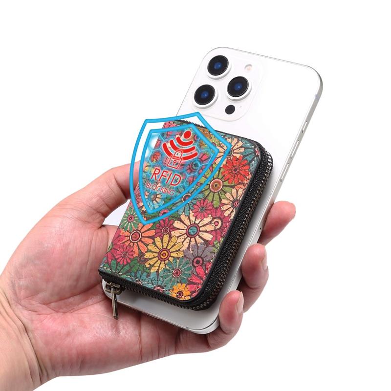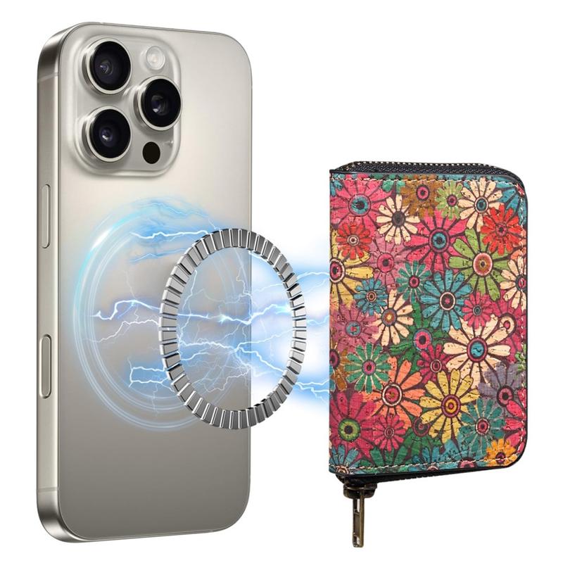 Porta-cartões magnético V16 com fecho de correr - Carteira com padrão floral, compatível com MagSafe
