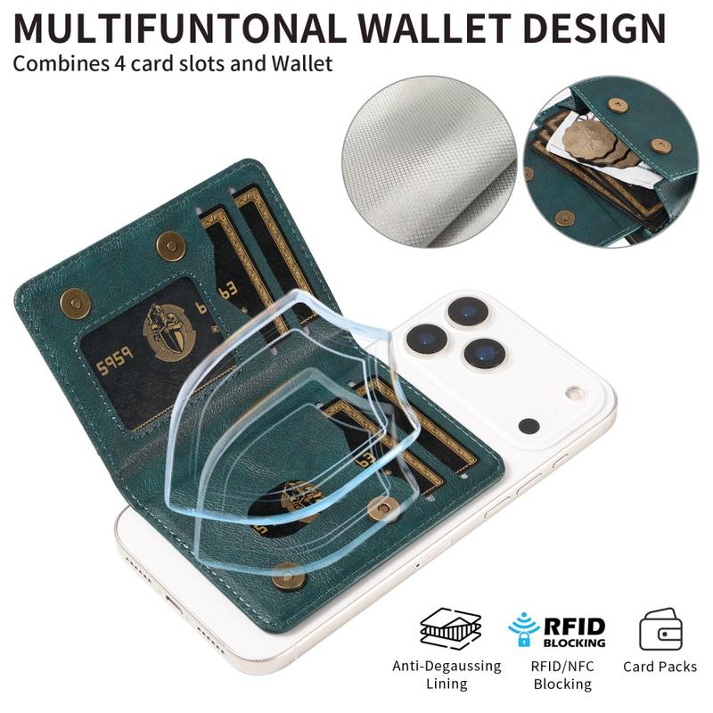 Porta-cartões MagSafe amovível / Carteira de bloqueio RFID com 4 ranhuras para cartões e função de suporte