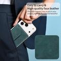 Fabricada em pele sintética de alta qualidade, a carteira oferece um aspeto requintado com um toque suave e duradouro. O seu perfil fino e leve cabe facilmente em bolsos ou casacos e também pode ser utilizada como uma carteira autónoma quando separada do telemóvel.