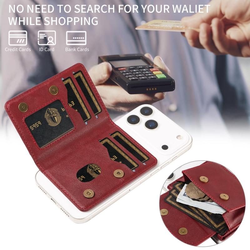 Fabricada em pele sintética de alta qualidade, a carteira oferece um visual requintado com um toque suave e duradouro. O seu perfil fino e leve cabe facilmente em bolsos ou casacos e também pode ser utilizada como uma carteira autónoma quando separada do telemóvel.