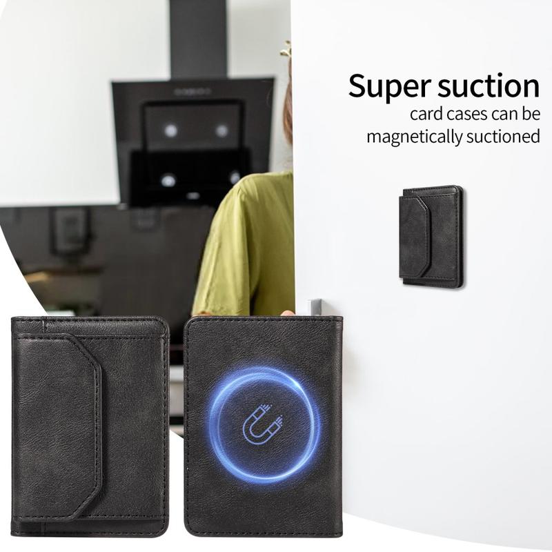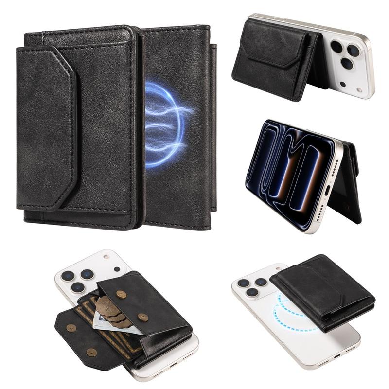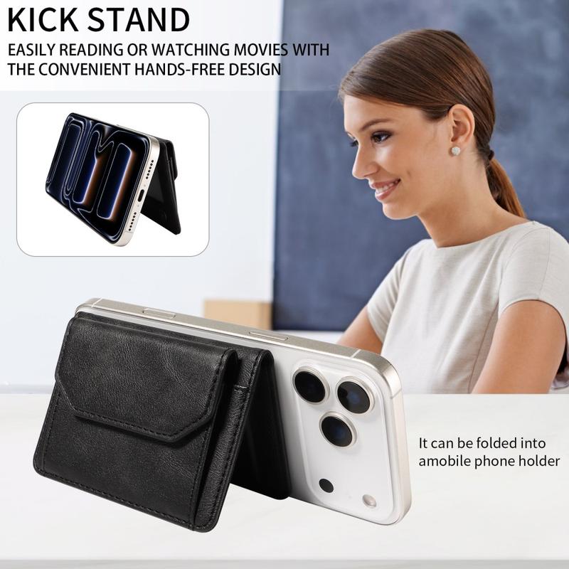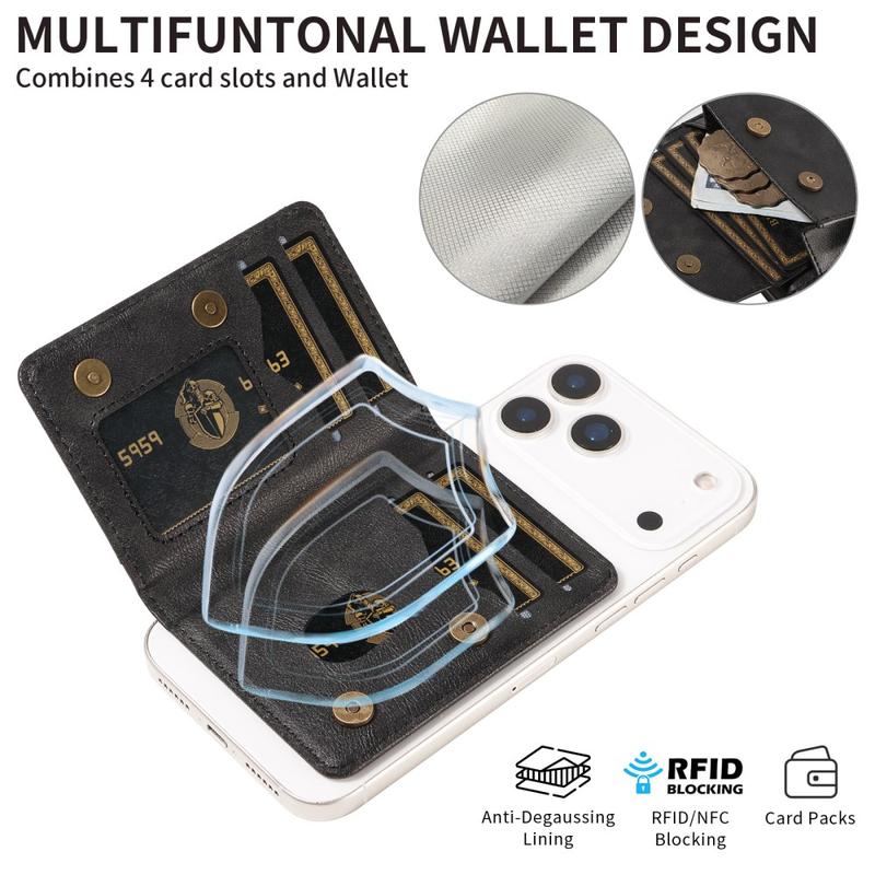 Porta-cartões MagSafe amovível / Carteira de bloqueio RFID com 4 ranhuras para cartões e função de suporte
