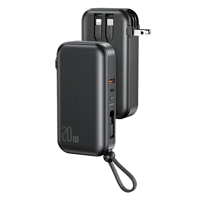 Este é um powerbank compacto e portátil com três cabos incorporados - USB-C, microUSB e Lightning. Tem, ainda, duas saídas, uma Tipo-C Power Delivery e uma USB-A Quick Charge, para maior compatibilidade. É feito de plástico e ABS, e tem uma bateria de polímero de lítio com 10000mAh de capacidade. A potência de carregamento de 20W recarrega os seus dispositivos no menor tempo possível.