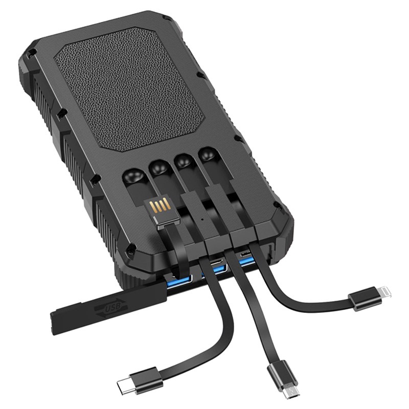 - Equipado com Lightning, USB-C, USB-A, e cabo MicroUSB incorporado