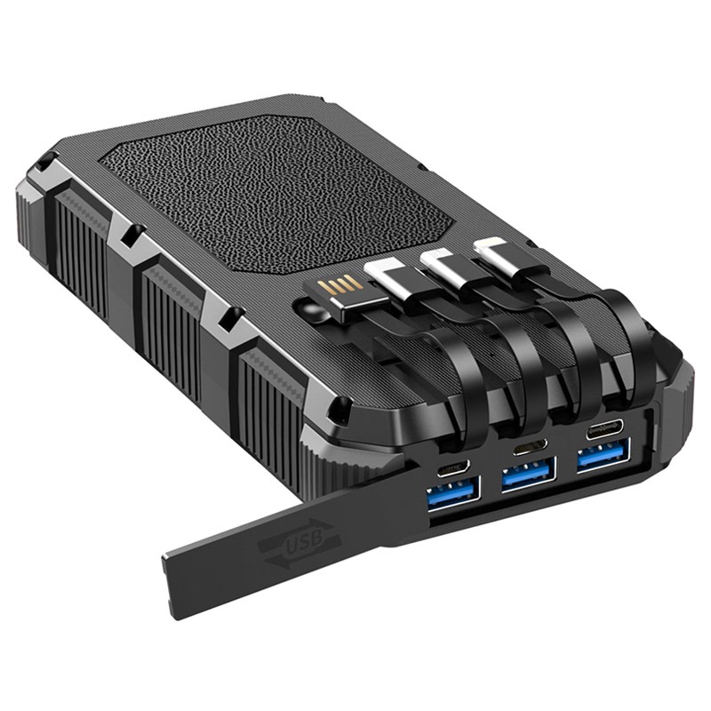 Recarregue sete dispositivos simultaneamente graças ao powerbank solar sem fios Psooo M2! Equipado com Lightning, cabo USB-C, USB-A, MicroUSB e três saídas USB-A, permite carregar vários dispositivos. Este powerbank solar de grande capacidade, com 36800mAh, garante-lhe energia para dias, ideal para acampar, caminhadas, pesca, etc. Também suporta carregamento sem fios de 5W para dispositivos compatíveis.