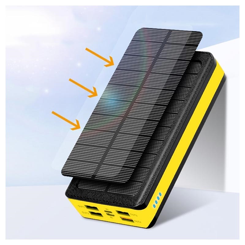 O powerbank solar / carregador sem fios Psooo PS-406 de grande capacidade permite recarregar simultaneamente até seis dispositivos. Este powerbank de carregamento super-rápido está equipado com uma porta PD3.0 USB-C, uma USB QC3.0, três portas USB-A, e um carregador sem fios de 15W, de modo que possa carregar todos os seus gadgets digitais enquanto vive as suas aventuras ao ar livre. Tem uma taxa de conversão de energia muito elevada graças a um painel solar monocristalino incorporado de silício e um sistema de proteções múltiplas para um carregamento seguro e fiável.