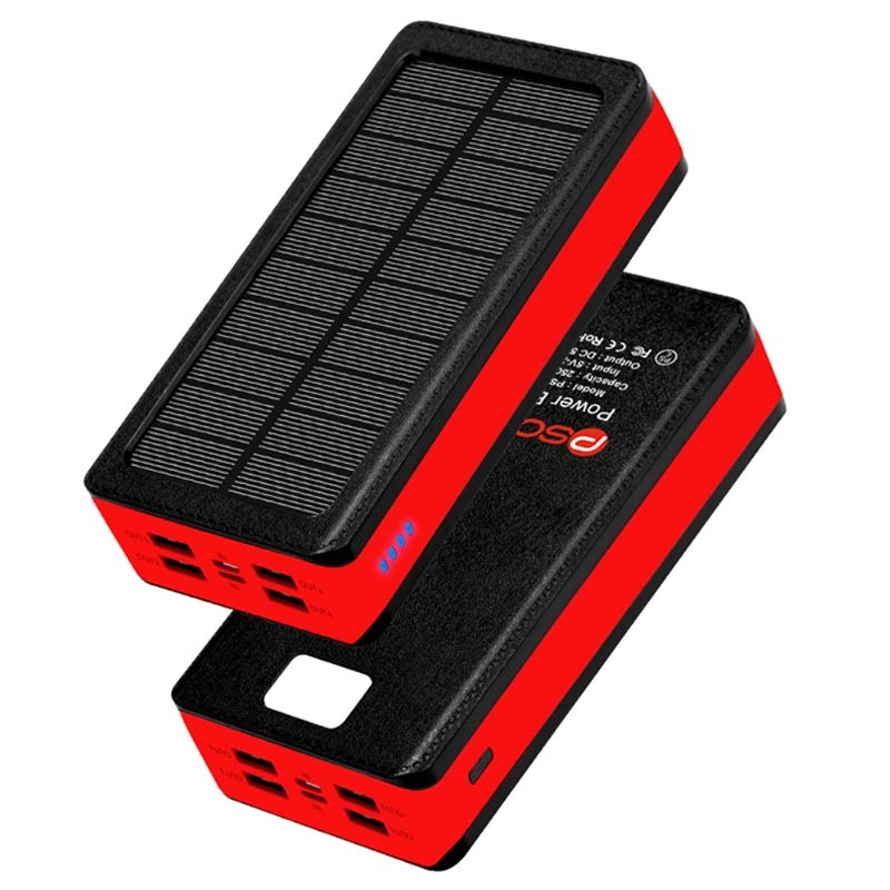 Power Bank Solar Psooo PS-400 - 4xUSB-A, 30000mAh - Vermelho