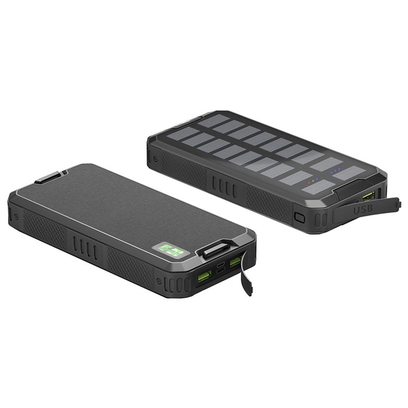 Equipado com uma bateria robusta de 20000mAh e um painel solar, é ideal para carregar os seus dispositivos em locais remotos. Reduza significativamente o tempo de carregamento graças aos protocolos de carga rápida como USB-C Power Delivery e USB-A Quick Charge 3.0. A lanterna LED constituí um acessório ideal para campistas e excursionistas.