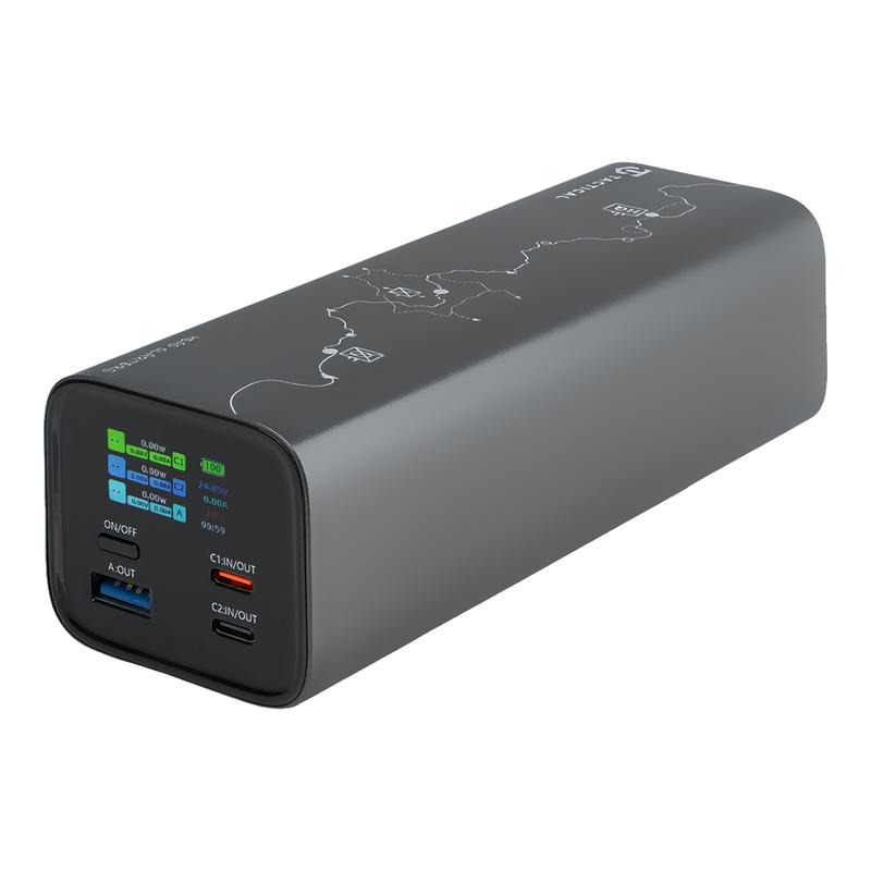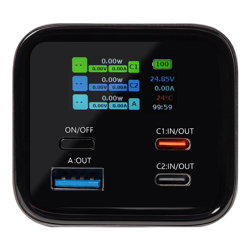 Com 2 portas USB-C e 1 porta USB-A, oferece carregamento flexível de vários dispositivos num corpo robusto em liga de alumínio. O ecrã TFT integrado mostra o nível da bateria, o estado de carregamento e a potência de entrada ou saída atual, para que tenha sempre uma visão geral clara. O seu design duradouro de inspiração tática e a grande reserva de energia tornam-no uma escolha prática para utilizadores que precisam de um carregamento fiável longe de uma tomada de parede.