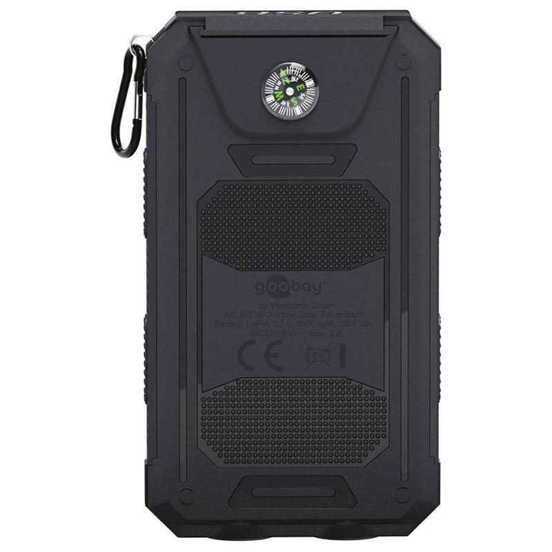 - O powerbank 8.0 solar de exterior da Goobay é adequado para a maioria dos dispositivos com USB