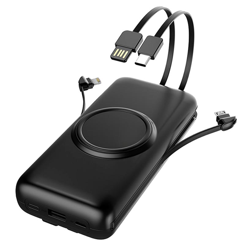 Powerbank Sem Fios Cyke P1 Plus - Saída: 5V 2.1A (MicroUSB), 2.1A (Tipo-C), 2A (Lightning) - 20000mAh