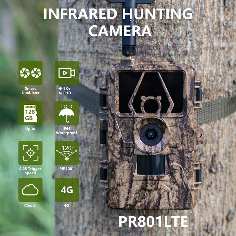 PR801LTE IP66 Câmara de vida selvagem sem fios à prova de água 4G 60MP 8K Câmara de caça (versão UE)