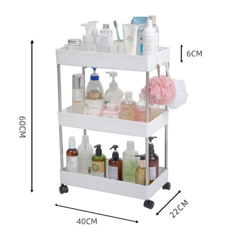 Este rack de armazenamento oferece o equilíbrio perfeito entre durabilidade, mobilidade e design que economiza espaço. As prateleiras resistentes e as rodas práticas facilitam a organização da sua casa de banho, enquanto a pegada compacta se encaixa sem esforço em espaços apertados. Uma adição inteligente e funcional a qualquer casa.