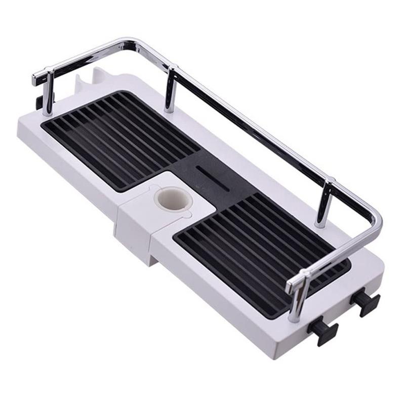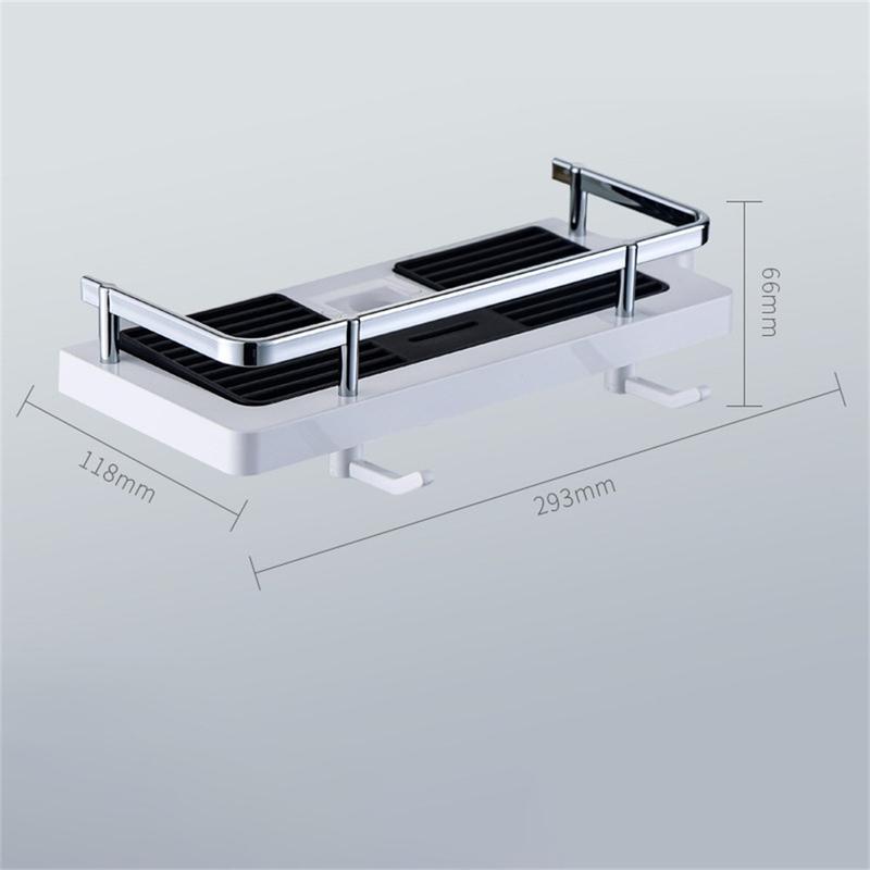 - Tabuleiro para champô espaçoso: Proporciona um espaço amplo para guardar champôs, amaciadores, sabonetes e outros produtos essenciais para o duche, mantendo-os ao alcance da mão.