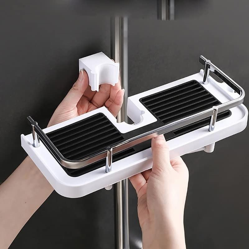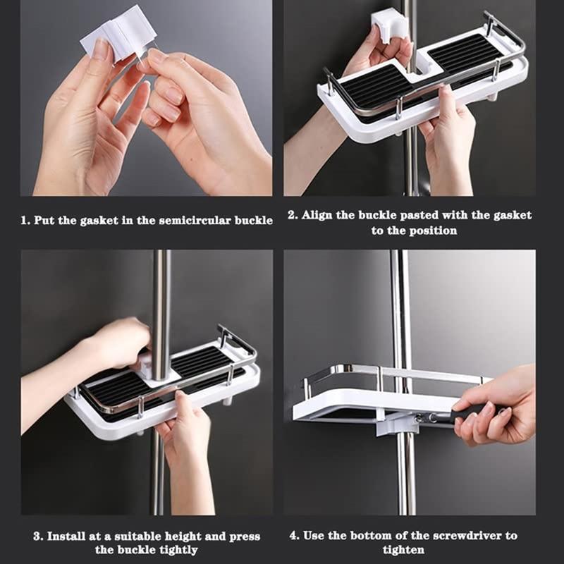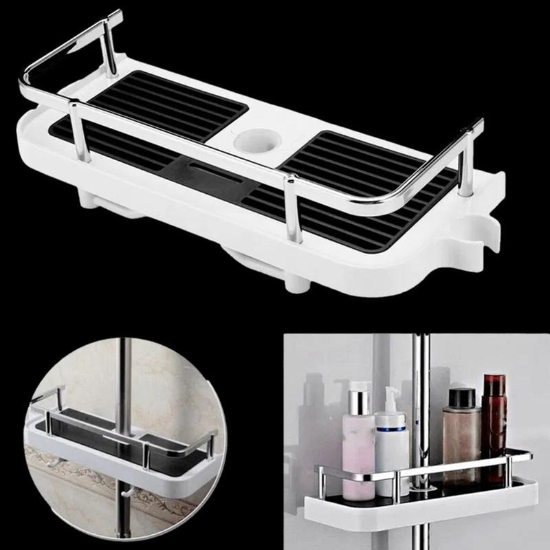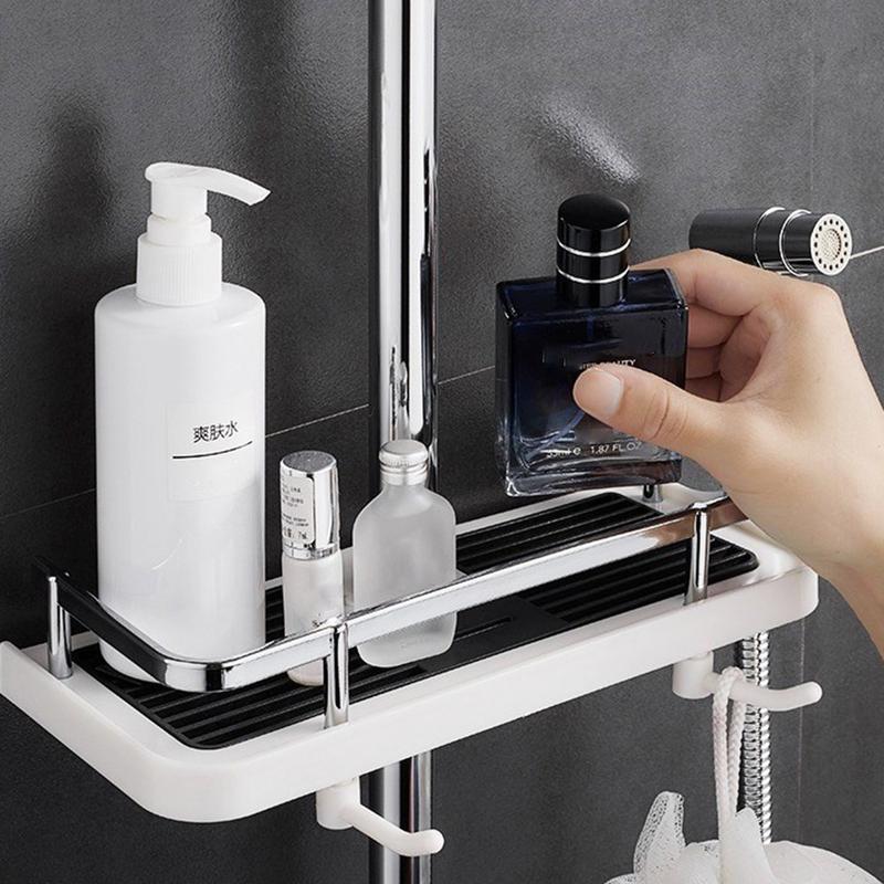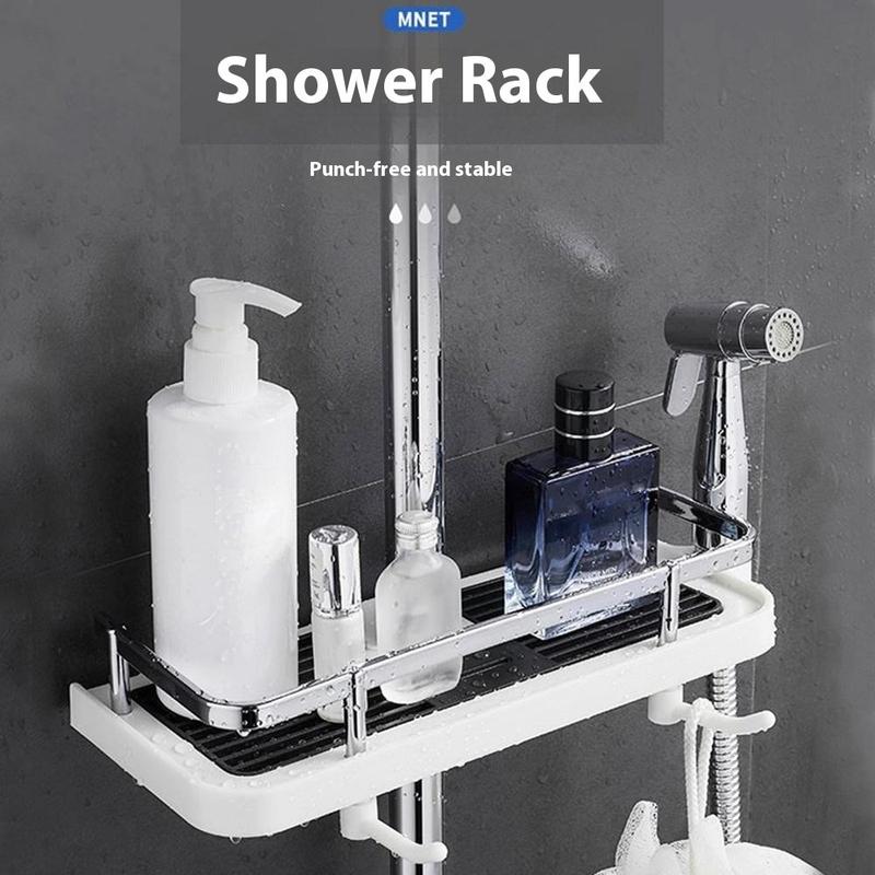 Melhore a organização da sua casa de banho sem esforço com este suporte de arrumação de duche ajustável e sem furos, combinando funcionalidade e comodidade para uma rotina diária melhorada.