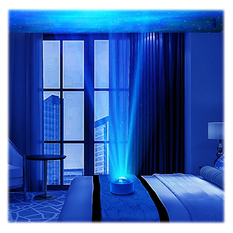 Fantástico projetor LED com múltiplas funções e efeitos especiais de luz. Combinações com 14 cores de luz e sete níveis de brilho, ajustáveis conforme a sua vontade. Projeção dinâmica do universo e aurora seguidos de cinco composições musicais incorporadas. O projetor tem uma função de temporizador automático, o que significa que se desliga automaticamente após quatro horas de funcionamento. O projetor de luz estelar também pode ser programado para desligar quando desejar. Vem com um comando remoto com a maioria das funções e um cabo USB.