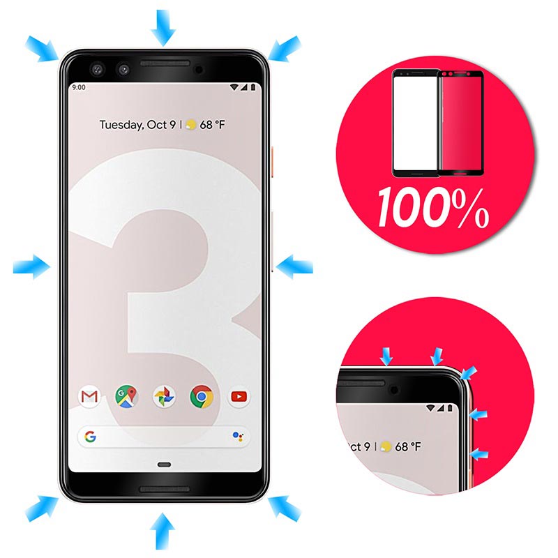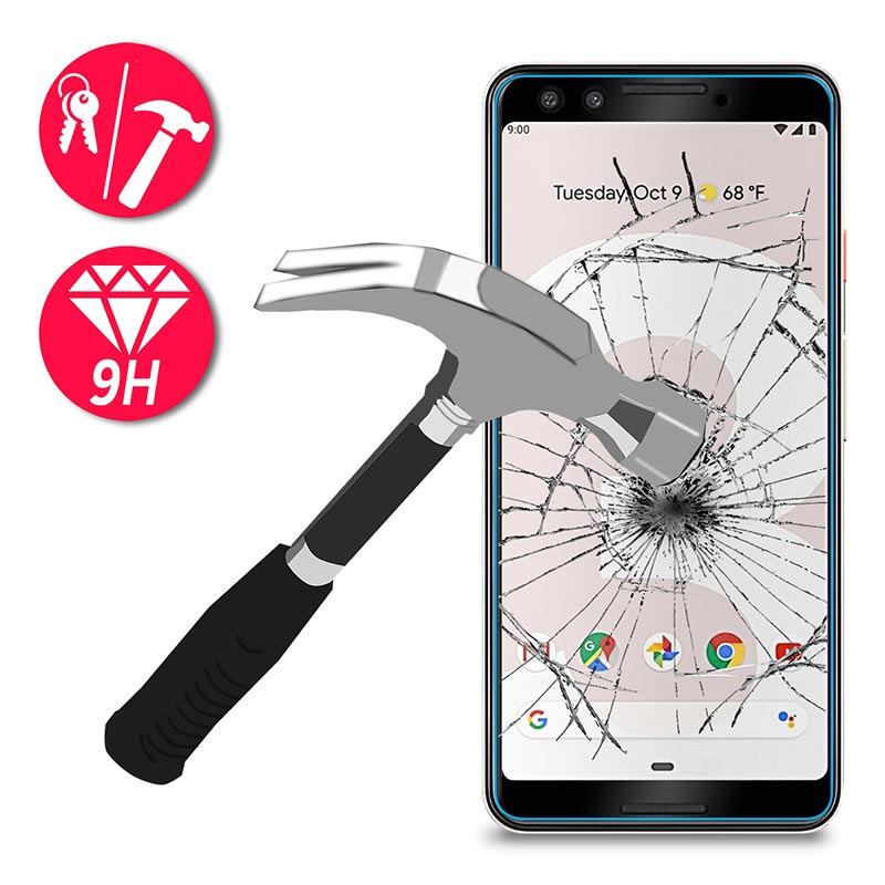- Protector de ecrã de vidro temperado para Google Pixel 3 que suporta capas da Saii