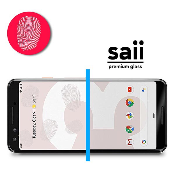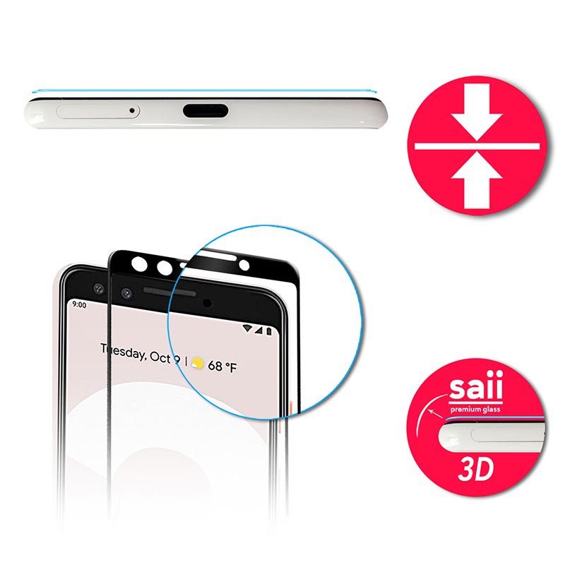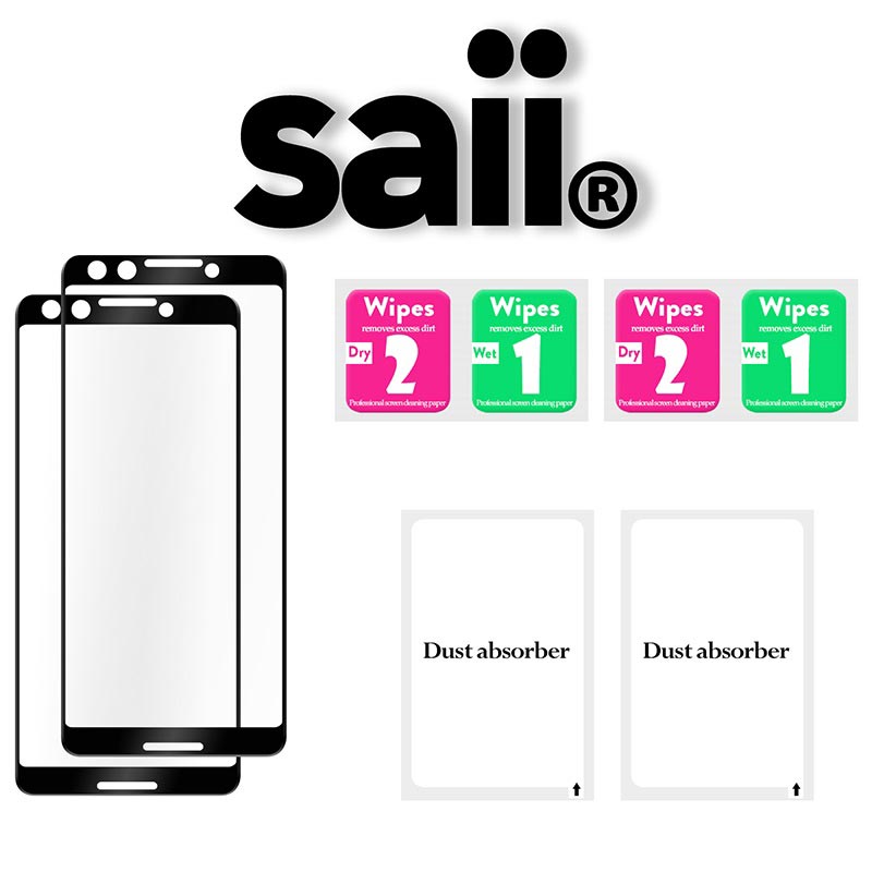 - O pacote contém dois protectores de ecrã de vidro temperado Saii para Google Pixel 3