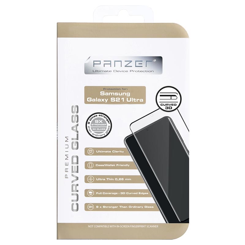 Protetor de Ecrã em Vidro Temperado Panzer Curved para Samsung Galaxy S21 Ultra 5G - 9H, 0.33mm