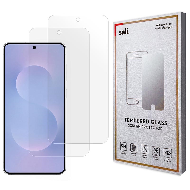 O pacote inclui dois protetores de tela de vidro temperado premium do Saii para Samsung Galaxy S25 Edge.
