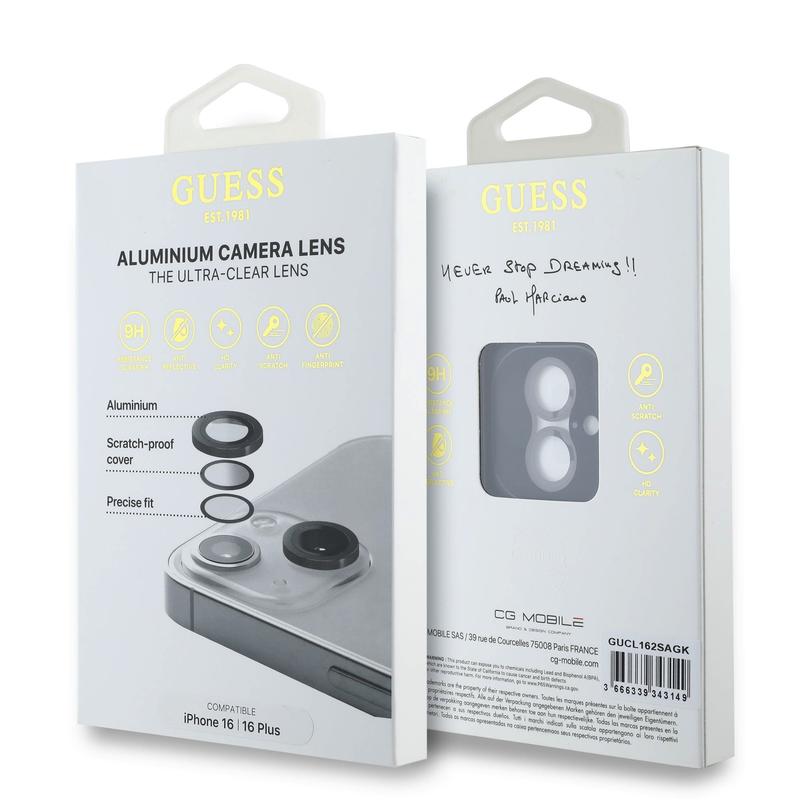 Protetor de lente de câmara em alumínio da Guess para iPhone 16, iPhone 16 Plus