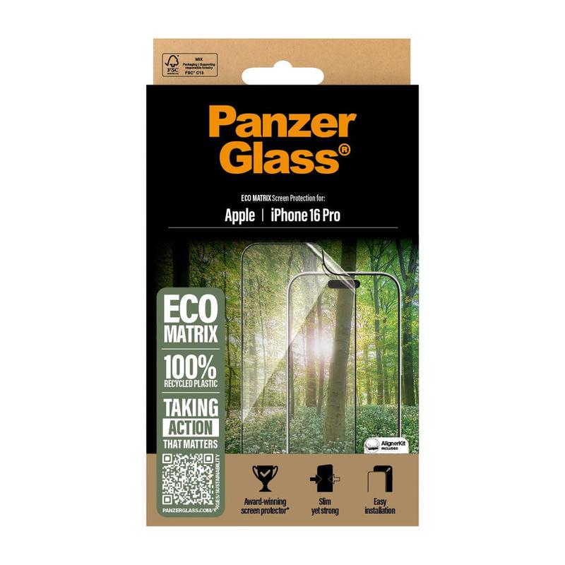 Protetor de ecrã PanzerGlass Eco Matrix Ultra-Wide Fit com EasyAligner para iPhone 16 Pro Max - 100% reciclado