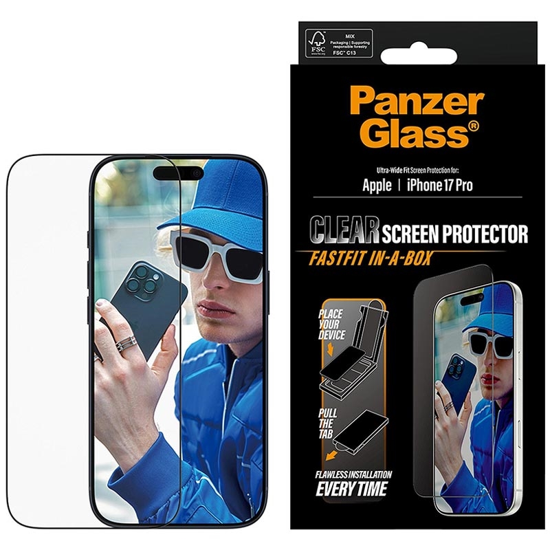 Protetor de ecrã de vidro temperado PanzerGlass Ultra-Wide Fit com FastFit In-A-Box para iPhone 17 Pro