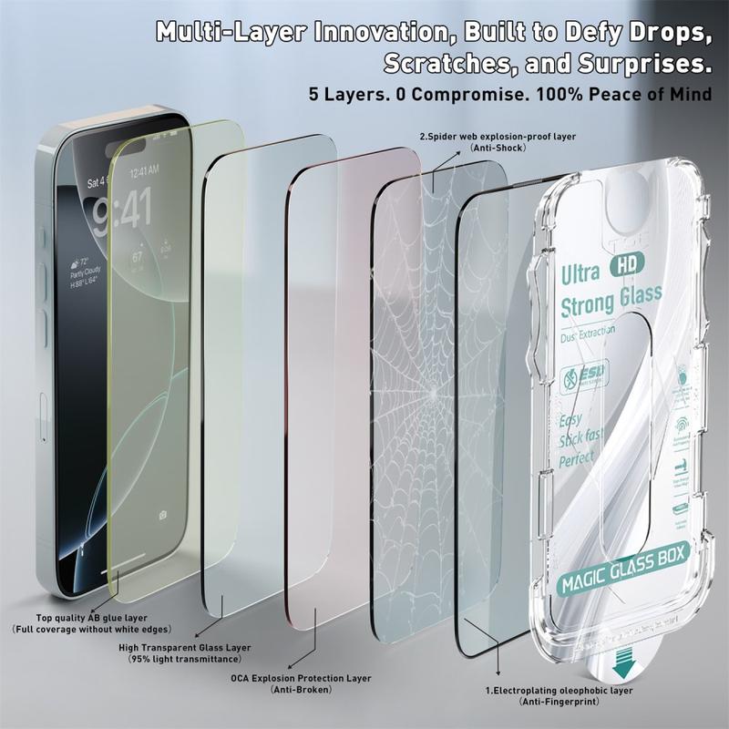 Quer seja para trabalhar, jogar ou viajar, este protetor garante que o seu iPhone 16e, iPhone 14, iPhone 13 Pro, iPhone 13 se mantém seguro contra riscos, impressões digitais e quedas acidentais, enquanto a ferramenta de instalação torna a aplicação em casa rápida e profissional.