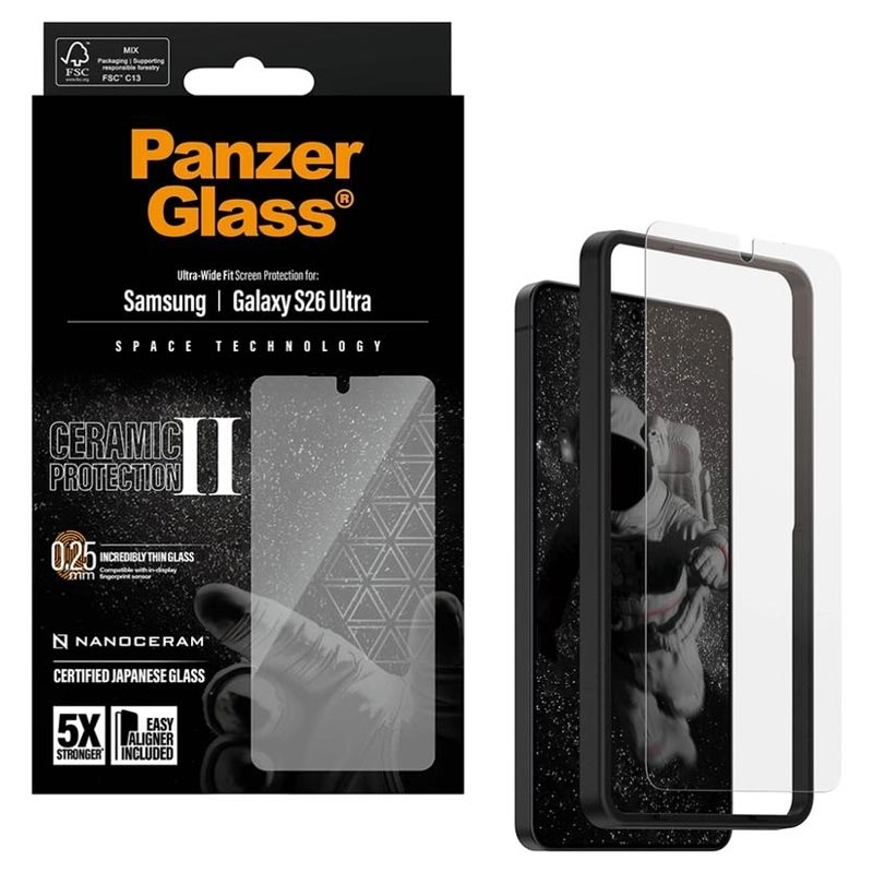 Protetor de ecrã PanzerGlass Ceramic II Protection Ultra-Wide Fit EasyAligner para Samsung Galaxy S26 Ultra - Vidro cerâmico, resistente a impressões digitais, compatível com capas