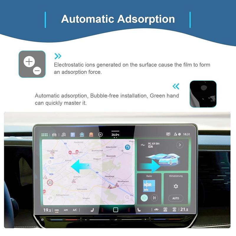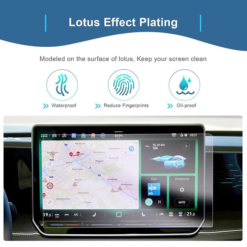 Proteja o ecrã de navegação de 12" do seu Volkswagen ID.4X/ID.6X 2021-2024 com este protetor de ecrã de vidro temperado com corte de precisão. Concebido especificamente para os modelos 2021-2024, ajuda a proteger o ecrã contra riscos, impressões digitais, poeira e desgaste diário, preservando a sensibilidade tátil e a nitidez originais do seu sistema de infoentretenimento.