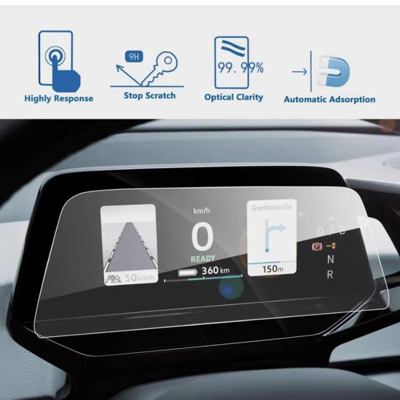 O ecrã do painel de instrumentos é uma das superfícies mais utilizadas no carro, por isso faz sentido protegê-lo desde cedo. Esta película de vidro temperado adiciona uma camada protetora resistente sem alterar a sensação original do ecrã. Ajuda a manter o ecrã mais limpo, mais claro e melhor protegido das marcas do dia a dia, tornando-o uma atualização inteligente para qualquer proprietário de um Volkswagen ID.3.