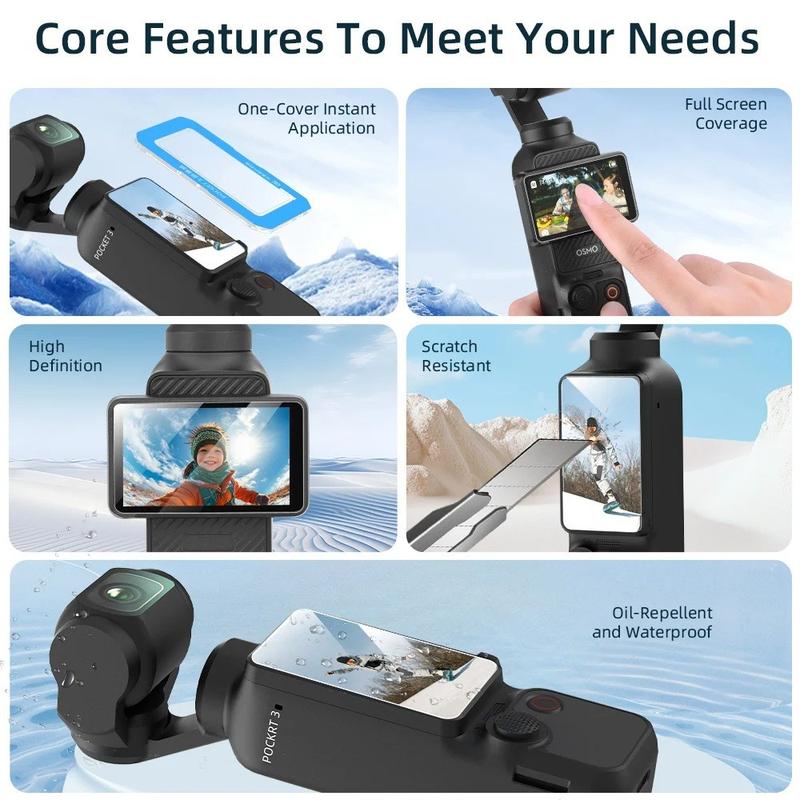 Se procura uma forma simples e eficaz de proteger o ecrã do seu DJI Osmo Pocket 3, este conjunto de vidro temperado é uma excelente escolha. Combina nitidez do ecrã, resposta tátil suave e resistência a riscos do dia-a-dia num kit de acessórios prático, concebido para a utilização regular da câmara.