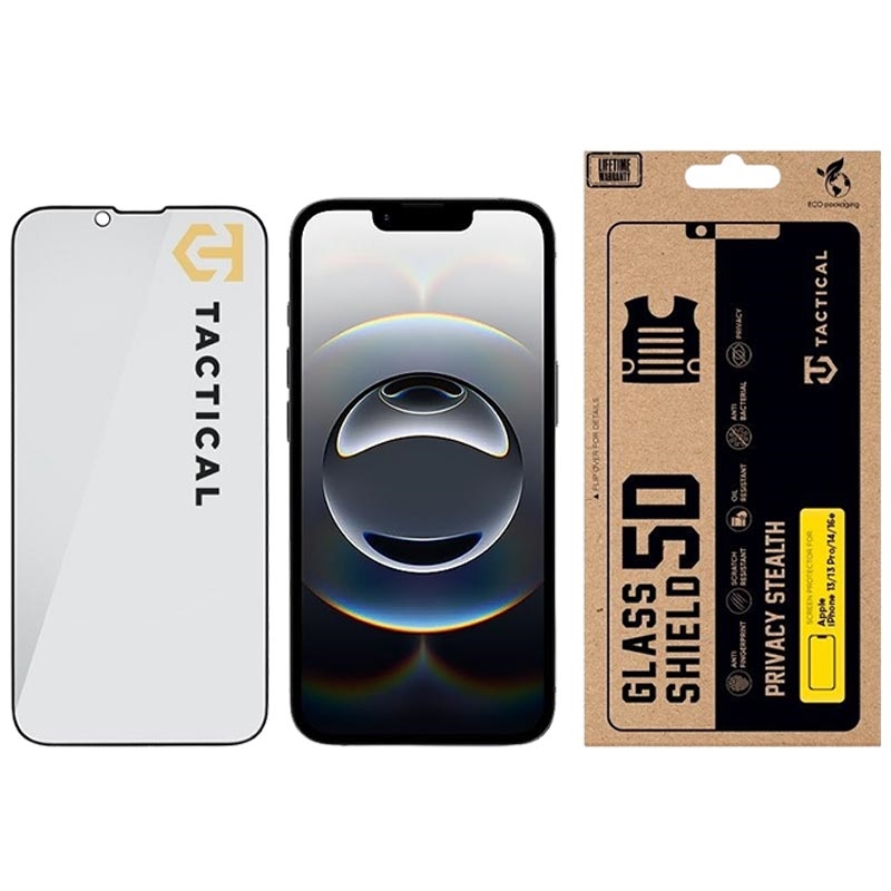 Protetor de tela de vidro temperado Tactical Glass Shield Privacy Stealth 5D para iPhone 13/13 Pro/14/16e/17e - 9H, 0,33 mm